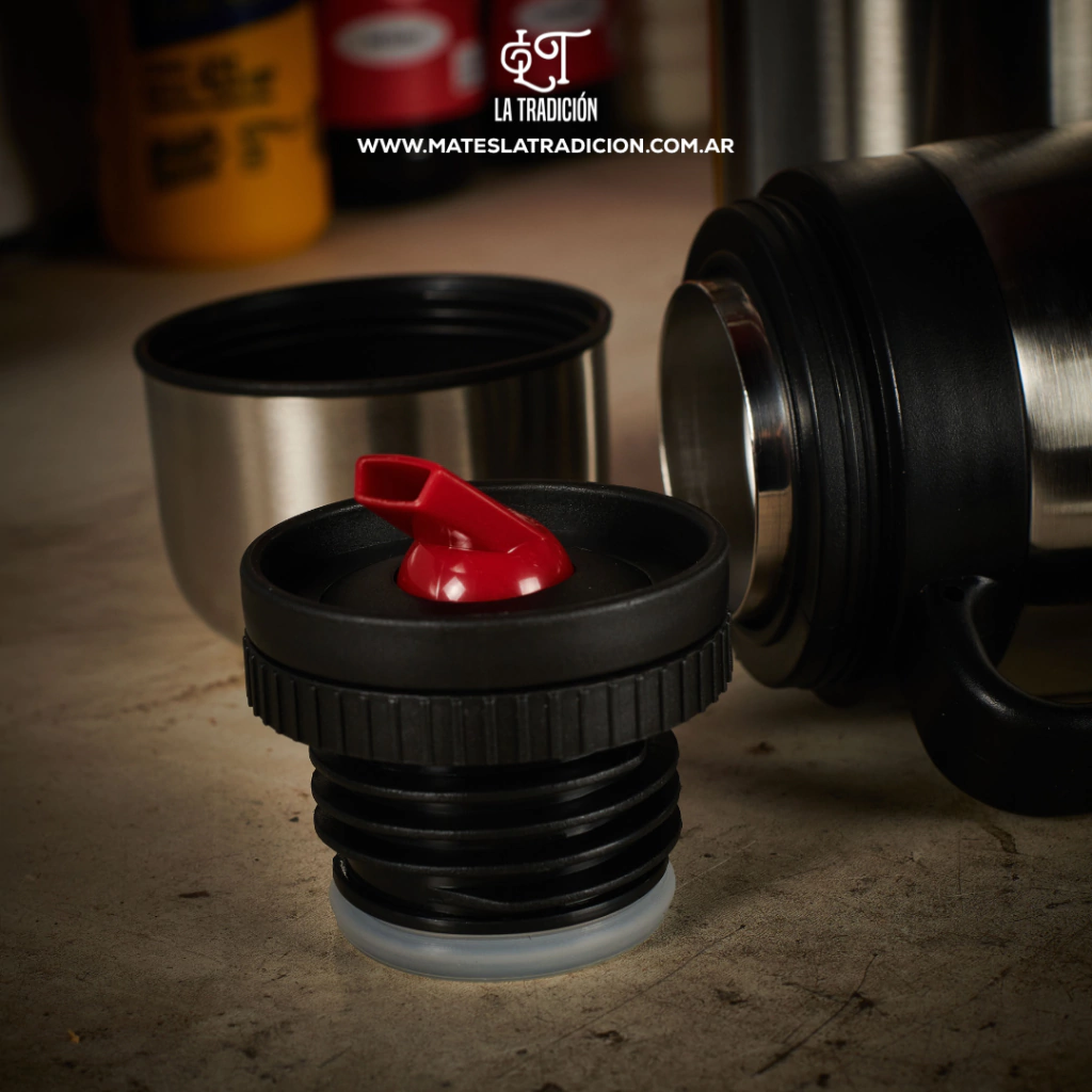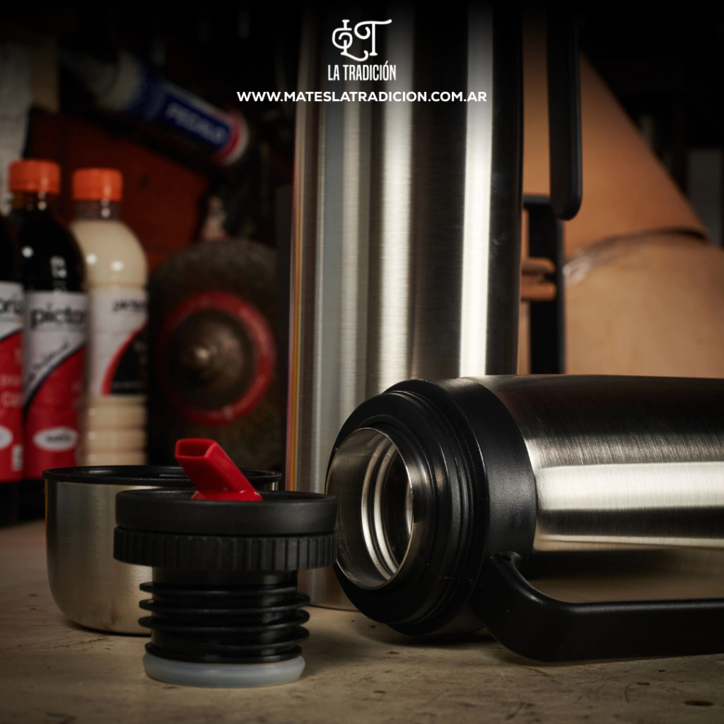 Todo combo matero necesita un buen termo, y este cumple con todo: pico cebador que hace más fácil el ritual, media manija cómoda para llevarlo donde sea y 1 litro de pura practicidad.